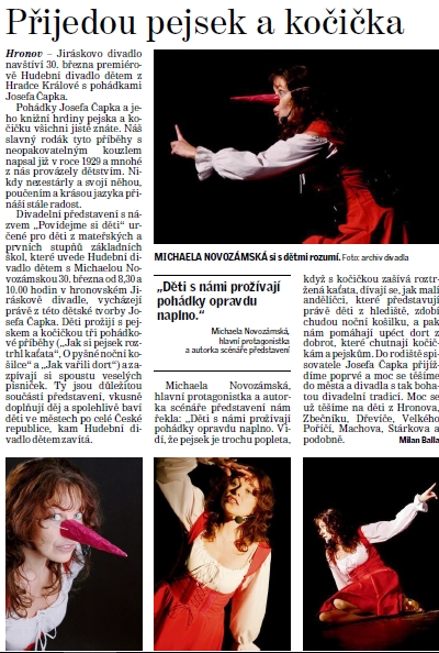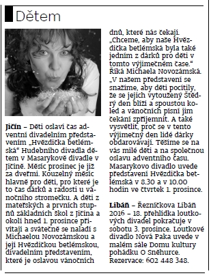 Vánoční atmosféru zpříjemní dětem z Jičína představení " Hvězdička betlémská" Hudebního divadla dětem. listopad 2016