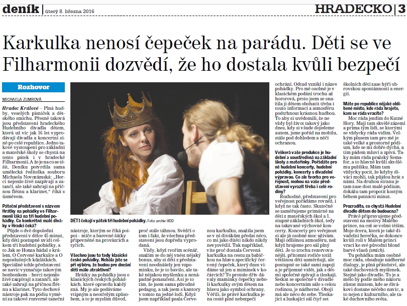Děti se v hradecké Filharmonii dozvědí, proč Karkulak nosila čepeček. 2016