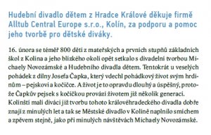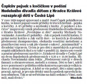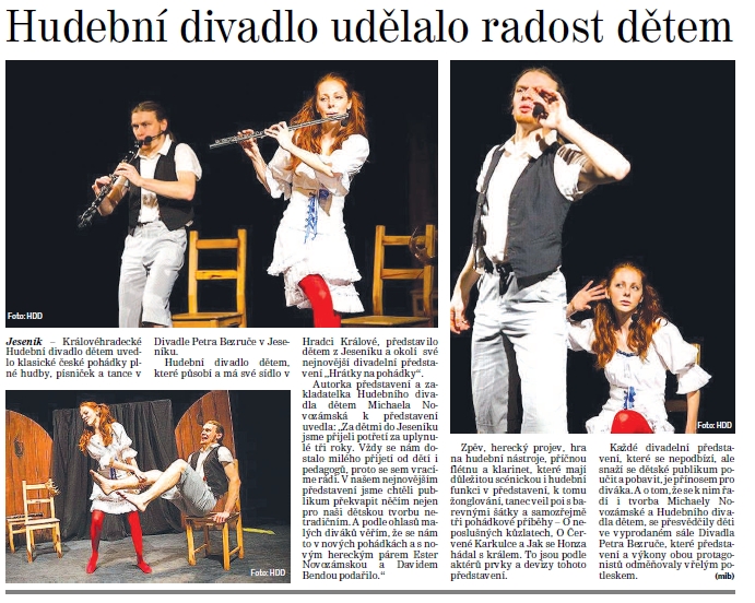 Královéhradecké Hudební divadlo dětem uvedlo představení " Hrátky na pohádky" v divadle Petra Bezruče v Jeseníku. Děti mohly vidět klasické české pohádky, plné hudby, písniček a tance. 18. března 2016